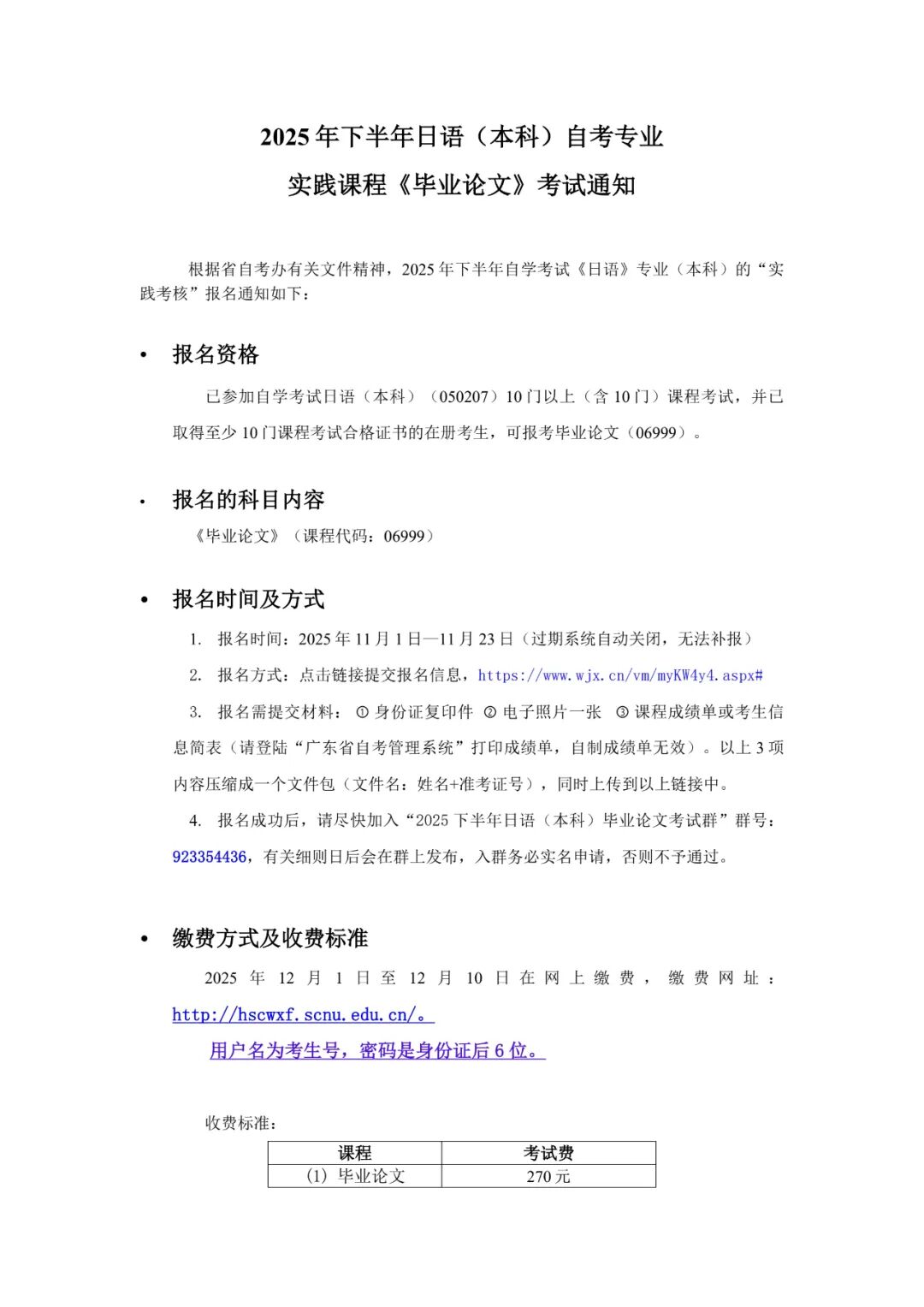 [华师]2025年下半年自考日语(本科)《毕业论文》考试报名通知